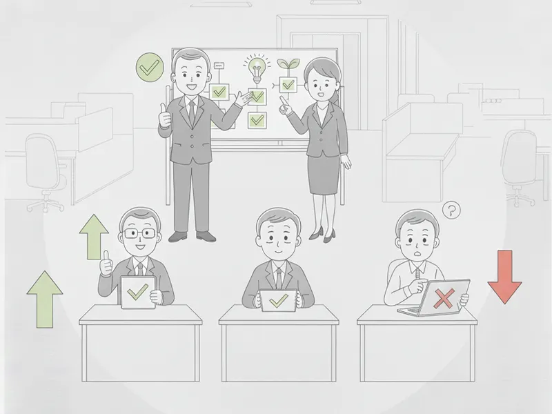 シニア層が学ぶべきは、ツールの操作方法よりも、「判断の基準」です。知識を構造化して提供することで、経験知と最新のルールを結合させます。