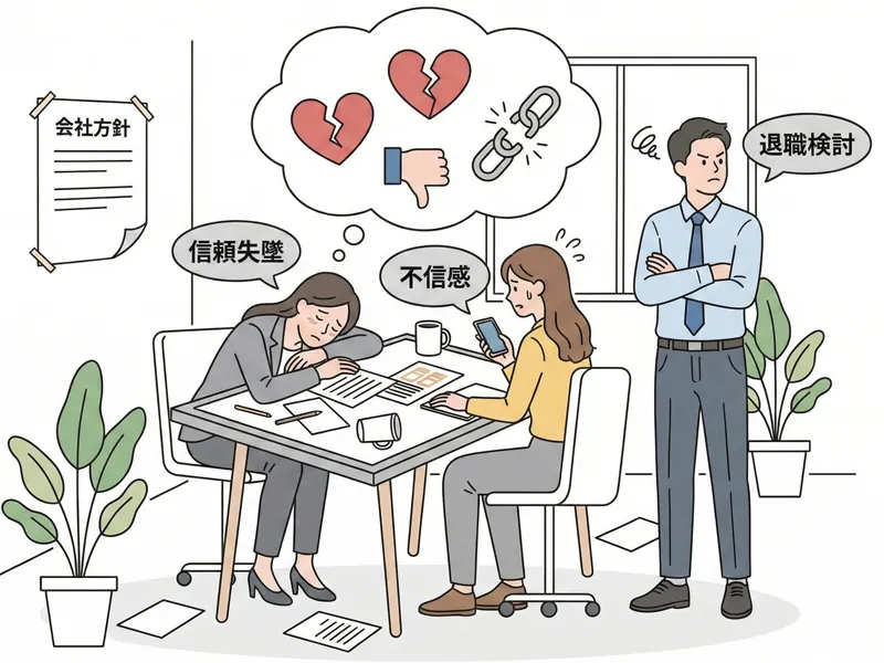 被害は外部だけではありません。真面目に働いている既存社員のモチベーションも低下させます。 自社のアカウントがネット上で嘲笑の的になったり、批判的なコメントで埋め尽くされていたりする状況を見て、誇らしいと思う社員はいません。「ウチの会社、ネットで馬鹿にされてますよ」という家族や友人からの指摘は、社員の帰属意識(エンゲージメント)を著しく傷つけます。 SNS担当者の暴走を放置することは、現場で汗を流す社員への背信行為でもあるのです。