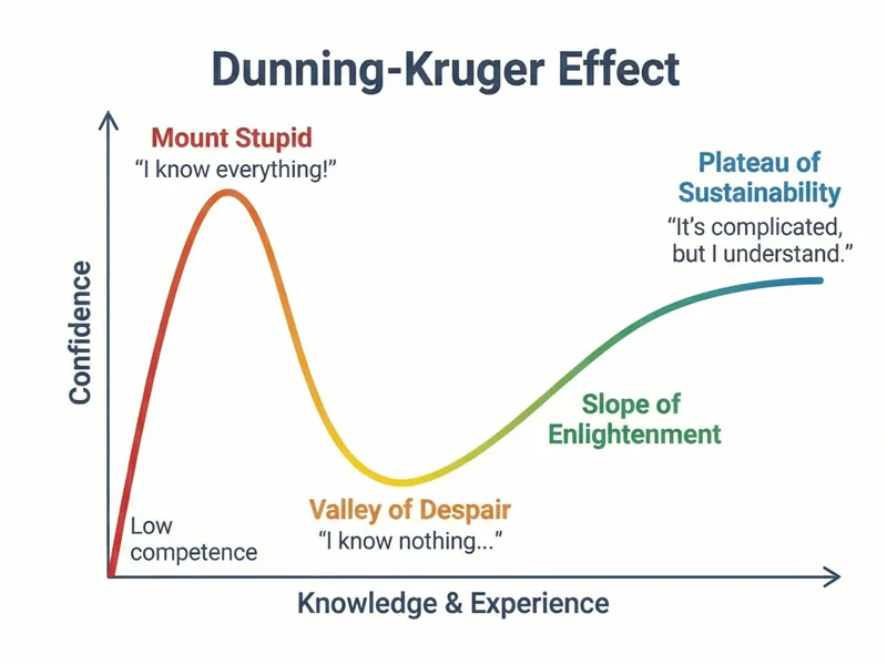 「能力の低い人は、自分の能力の低さを正しく認識できない」という認知バイアスを「ダニング=クルーガー効果」と呼びます。これは業務スキルだけでなく、コミュニケーション能力にも当てはまります。